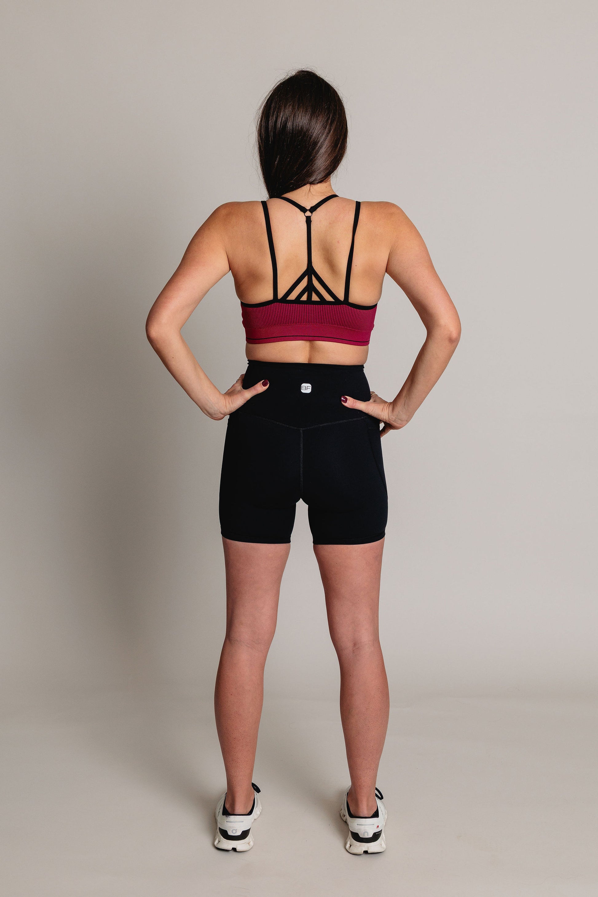 Pensée pour l’action, elle combine maintien intégré, coupe sculptante et matière nervurée ultra confortable.