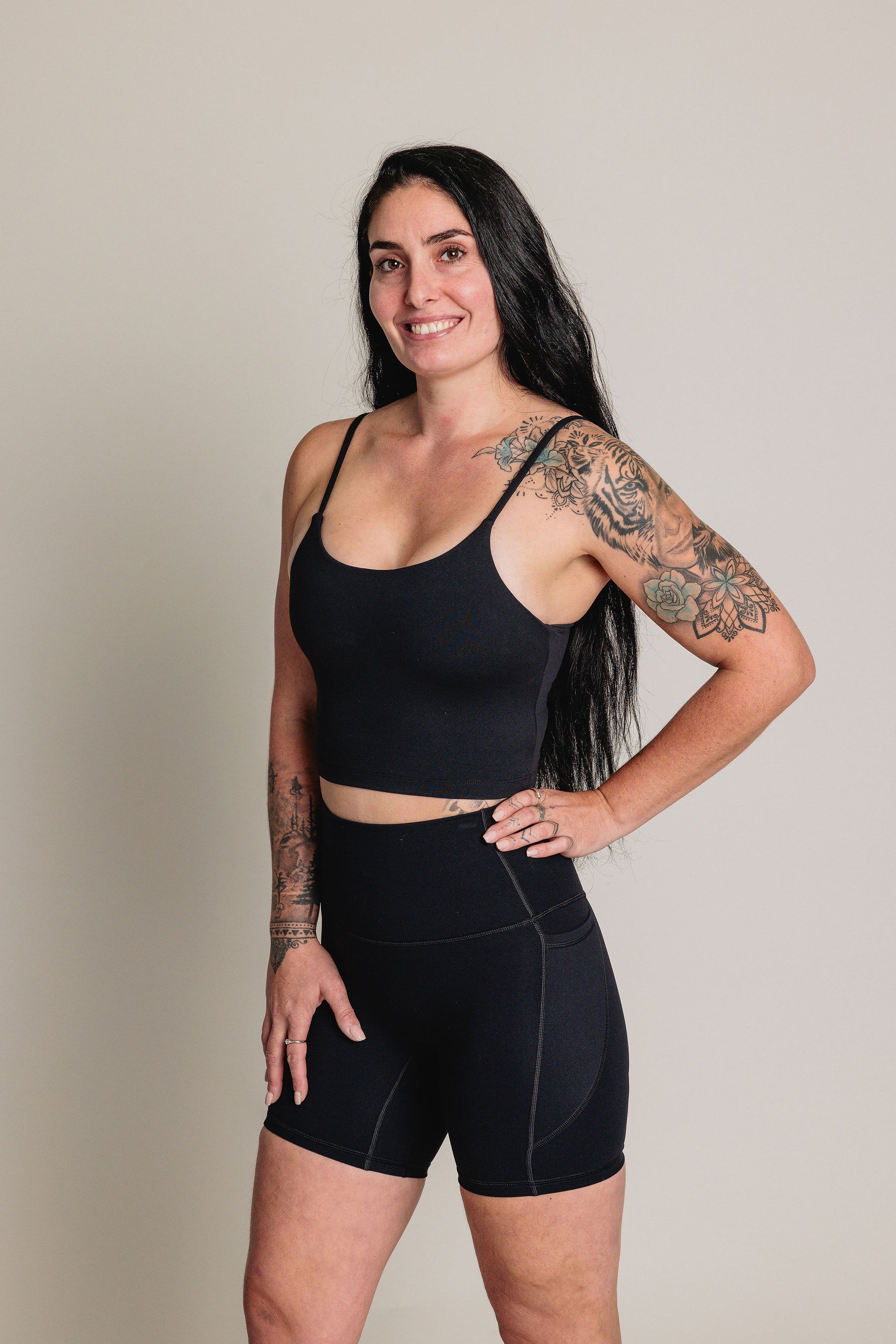 Peut être portée comme soutien-gorge de sport avec chandail par-dessus ou simplement comme camisole écourtée pour l'entraînement