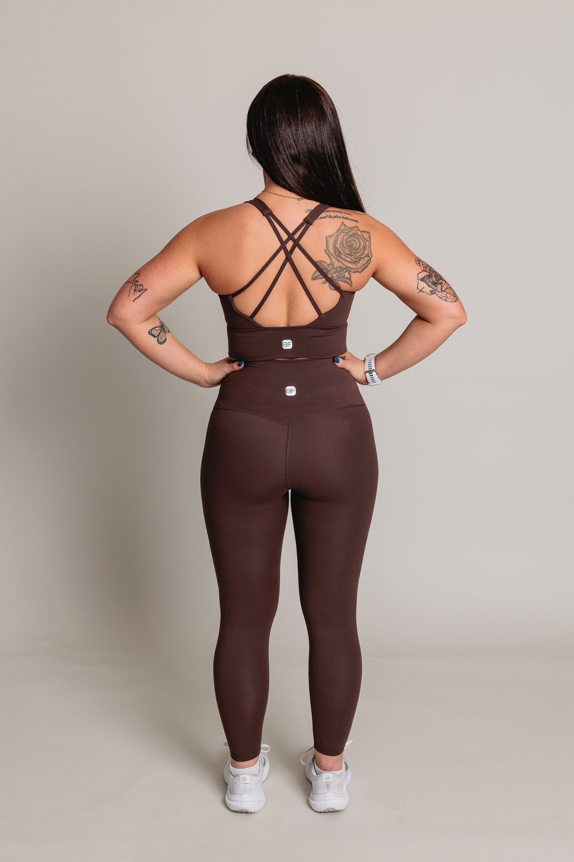 Bretelles moyennes jusqu'au niveau des trapèzes, pour ensuite devenir une fine bretelles croisée dans le dos.